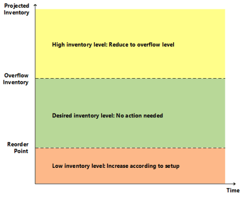 This concludes the description of central principles relating to inventory planning based on reordering policies. The following section describes the characteristics of the four supported reordering policies.