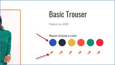 It is possible to manage item color variant images on B2C Webshop. When the color image is uploaded the system automatically determines the dominant color and sets it to a colored dot. In case of automatically determined dominant color is not correct – then it is possible to manually determine the color for the colored dot on the product page.