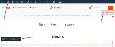 TRIMIT B2C Webshop comes with a web Admin interface that is shown directly in the shop pages. In the web admin it is possible to make the daily needed adjustments to the shop like: