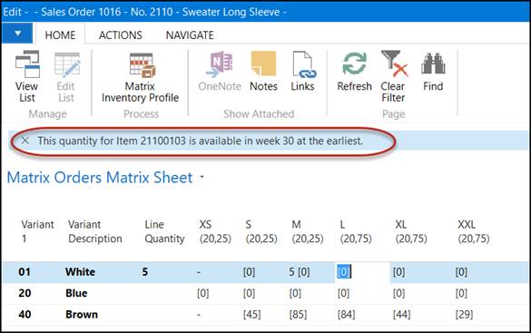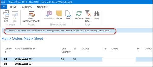If you want to work with limited capacity by using the TRIMIT Bottleneck functionality, it is now also possible for Sales Lines that are entered via a Matrix, and not only for Sales Lines entered with Type Item.