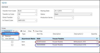In case you have a Transfer Order with Assortments, it is now also possible to explode the BOM of these Assortments – meaning it show the individuals Items that are part of the Assortment instead of the Assortment Item.