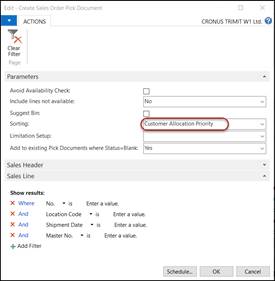 The Sales Orders will be sorted based on the Customer Allocation Priority field in the Sales Order Header and the Order Date field in the Sales Header. This option was also the sorting in previous releases. |