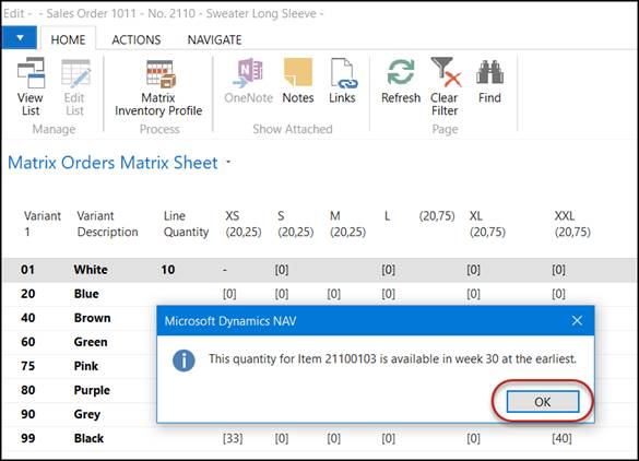 In previous releases, when you enter a higher quantity in i.e. a Sales Line or Matrix, then there is available you would get a dialog with the message, in which you needed to click OK.