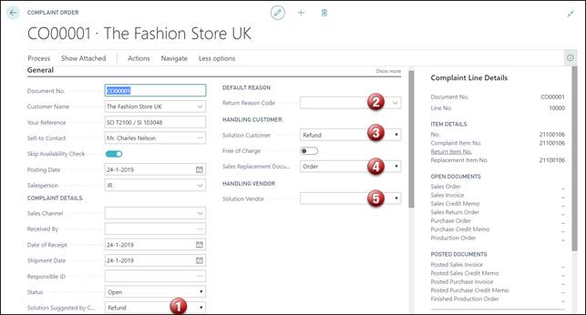 - FactBox Complaint Lines Details with all related Documents that will be created during the Complaint handling.