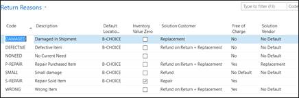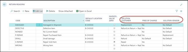In the Return Reason Code, you are able to enter the defaults for Solution Customer, Free of Charge, Solution Vendor and Default Location Code.