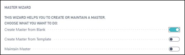 When starting the Wizard you get a first option, and you are able to create a new Master without copying information from another Master Create Master from Blank. You are also able to change information of a specific Master Maintain Master: