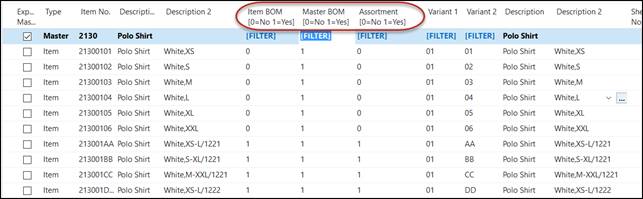 Clicking Functions, Explode BOM on the Assortment Matrix Line will now result in: