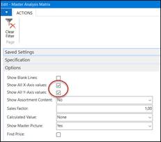 These options will show all columns (X-Axis) and/or lines (Y-Axis) of a Matrix, even if there are no Sales Orders or Availability for them.