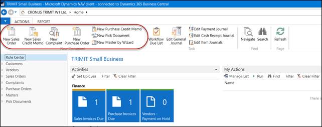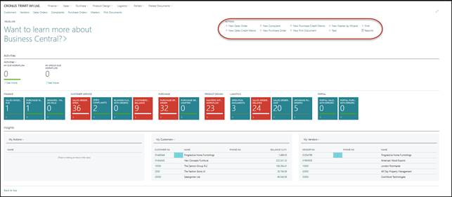 In this Role Center, we have rearranged the functions, so it is easier to create new documents.